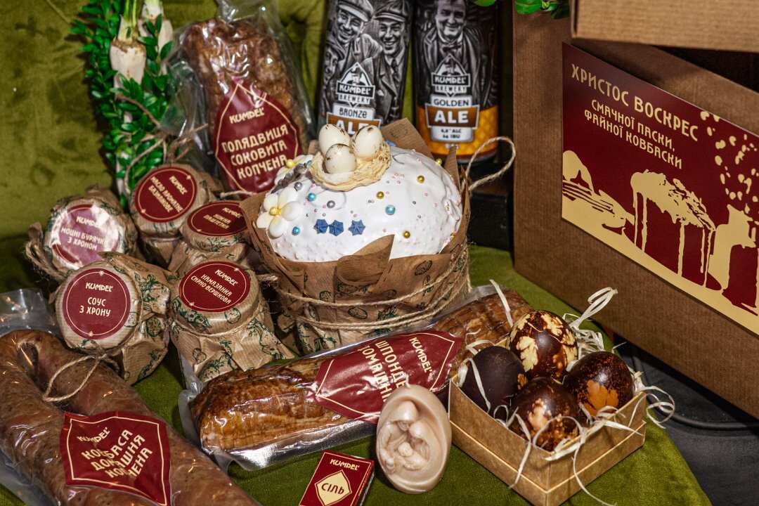 На Великдень Кумпель кличе і до столу, і на доставку. Для тих, хто хоче святкувати вдома, маємо великодній кошик із паскою, м'ясними наїдками, намазанками, крашанками та пивом. Для тих, хто планує завітати в заклад, підготували великодній обід на двох і кумпелеві навбитки — традиційну гру з крашанками, де перемога смакує ще краще з келишком пива.